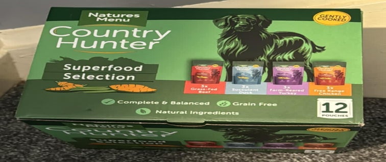 Dog food in tins, pouches and trays